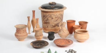La ceràmica és la troballa més abundant en els jaciments romans. La vaixella de taula canviava molt de moda i per això és molt útil per datar estrats arqueològics. A la República (fins al segle I aC) s’envernissava en negre i després, durant l’Imperi, en vermell (l’anomenem sigillata, ‘ceràmica segellada’, perquè algunes duen el segell del fabricant). Fins al segle II dC són freqüents els vasos i copes per beure que imiten els de plata i que anomenem “de parets fines” (arriben a tenir menys d’un mil·límetre de gruix).