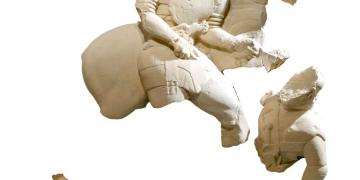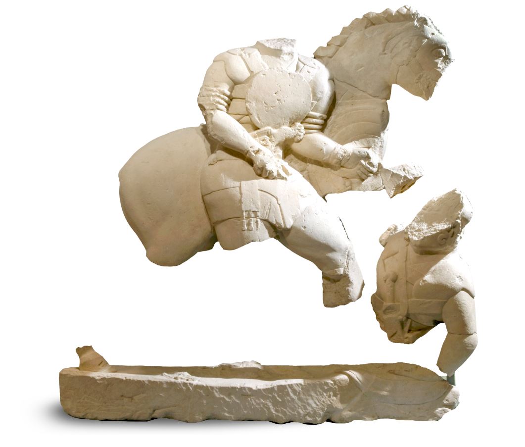 Grup escultòric exempt que representa la lluita de dos guerrers. Forma part del conjunt d’escultures de Porcuna i és un dels més impressionants de la cultura ibera. Destaca tant per la qualitat del treball com pel moviment i el dinamisme de les representacions. Necròpolis de Cerrillo Blanco, Porcuna, Jaén. Calcarenita. 500-415 aC . 1200 × 1000 × 480 mm. Museu Provincial de Jaén (Núm. reg.: CE/DA01683/E04). Museo de Jaén. Junta de Andalucia.